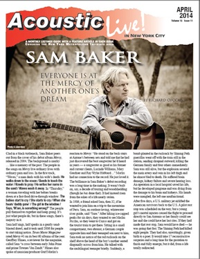 In 2003 Baker opened a show for Texas singer/songwriter Walt Wilkins, at a bed and breakfast establishment in Llano, Texas. Wilkins told Sam he knew how he should sound and arranged for Sam to visit Nashville, his recording base. Wilkins and co-producer Tim Lorsch recorded Sam’s voice, guitar and harmonica on a dozen originals, then layered background instruments and vocals to create Sam’s brilliant 2004 debut, Mercy.