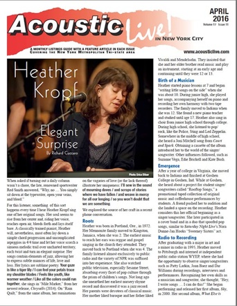We encourage our readers to see this brilliant artist at every opportunity. Her repertoire goes beyond her latest release and her live performances are captivating. Heather will be appearing at Rockwood Music Hall in Manhattan on April April 6 at 6 p.m. We plan to make it and hope you will, too.