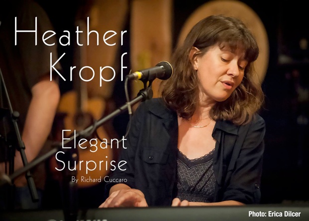 For this listener, something of this sort happens every time I hear Heather Kropf sing one of her original songs. Her soul seems to rise from her center and, riding her voice, reaches open air, bleeds forth and lays itself bare. A classically trained pianist, Heather will, nevertheless, most often lay down a simple chord progression and uncomplicated arpeggios in 4/4 time and let her voice scorch a sinuous melodic trail over uncharted territory, each twist and turn an elegant surprise. Her songs contain elements of jazz, allowing her to express subtle nuances of life, love and loss. Her lyrics are sublime poetry. Your gaze is like a tiger lily / I can feel your petals trace my shoulder blades / Feels like youth, like warmer weather / Like all the colors could run together, she sings in “Mile Marker,” from her newest release, Chrysalis (2014). On “Rain Quilt,” from the same album, her ruminations on the vagaries of love (or the lack thereof) illustrate her uniqueness: I’ll sew in the sound of mourning doves / and scraps of stories where we have fallen / and weave in mercy for all our longing / so you won’t doubt that we are something.