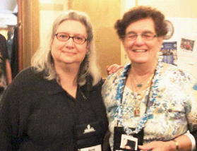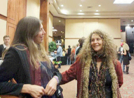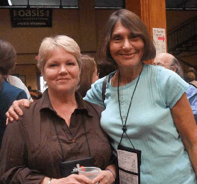 Anne Saunders, Falcon Ridge Folk Festival impresario, and Reba Heyman do some catching up.