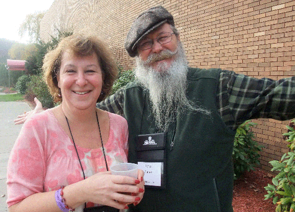 It seems as if Peter James is saying the above about the unexpected but welcome balmy weather outside the hotel during the kick-off cocktail party on Friday afternoon. It seemed to be a harbinger of the overall high-spirited nature of the conference. That’s Amy Blake, of “The Place” house concerts, at left.