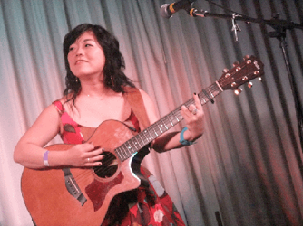 At the urging of WFUV’s John Platt, we rushed to see Layah Jane. We saw that his enthusiasm was well-founded. She’s like Diana Krall with a guitar. Without it, perhaps even a bit more. Here she is in an impromptu semi-private afternoon showcase performed in our room.