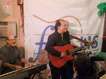 Another late bailout enabled us to correct our failure to include the YaYas in our showcases. Here they are, at left, sharing their musical wizardry.They’ll be in our