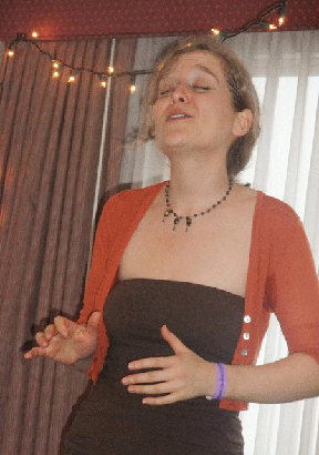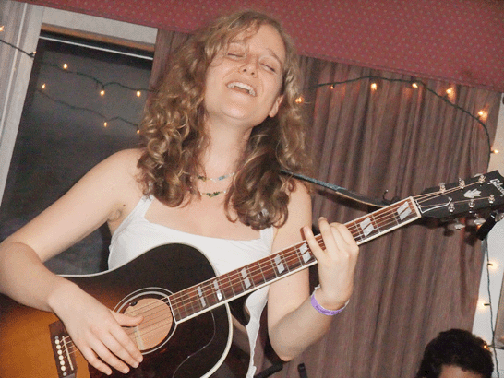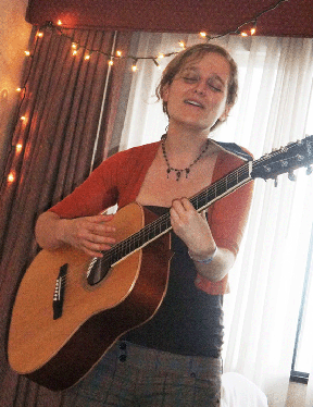 Ali Chambliss in the KindredFolk room shows what a passionate folkie looks like.