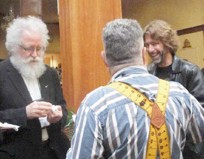 That’s Canadian Ken Whiteley, monster picker at left, and John Flynn at right, listening to some guy whose suspenders let him know when to stop eating.