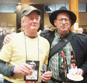 Robin Batteau, right, gets cozy with Ellen Bukstel (from Florida) during the cocktail party.