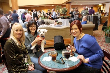 L-R: Agent Michelle Fortier, musicians Loretta Hagen (with Luca, her dog) and Meg Braun