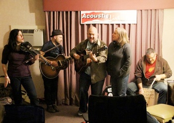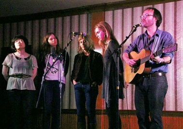 Musician Greg Klyma with presenters Coco and Bruce Wilde (First Acoustics series, Brooklyn, NY)