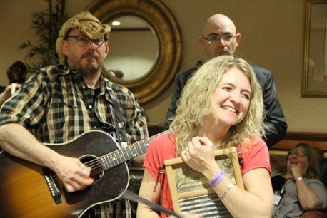 We didn’t catch their name, but this group was the first we saw setting up in the lobby on Friday after we arrived. The lobby jams are a big part of NERFA magic.