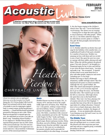 Heather Pierson is a musician who I hope will play the New York City area more often. She’s someone worth hearing and someone worth knowing better. Much of who she is personally can be found in her blog on her website, where she shares many intimate reactions to events in her life. We’re privileged to have had the opportunity to make her acquaintance.