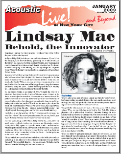 Local concertgoers can hear her sing what's real and true on January 9 at The Outpost in the Burbs in Montclair, NJ. (see our listings) when she opens for The Kennedys. After that, she's off to Massachusetts, then points West and North (February in Fargo ND! Yikes!) On March 21, she's back in Westchester for a "New Voices" concert.