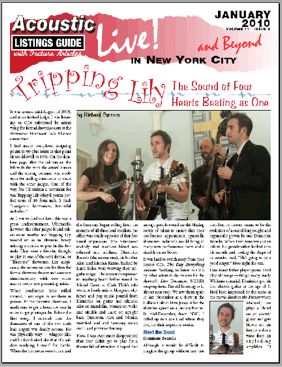 It was hard to switch away from their newest CD, The Day Everything Became Nothing, to listen to CDs by other artists to do reviews for the Acoustic Live December NERFA wrap-up issue. I’m still listening to it, almost non-stop. We saw them again in late November at a show at the Hillside Cafe in New Jersey. After the show we agreed on a January feature. In mid-December, from NYC, I called up to Cape Cod where they live, for their respective stories.