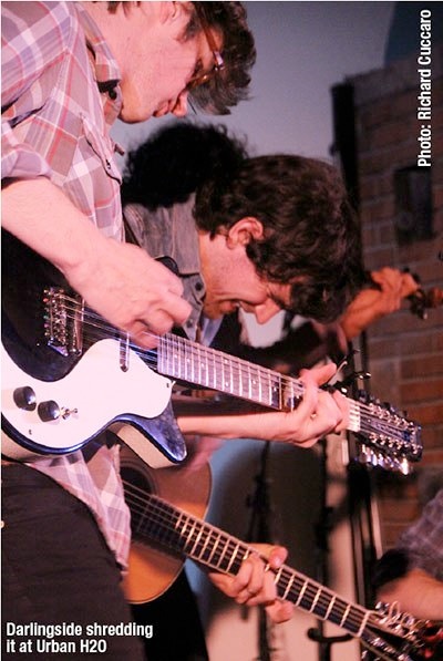 Daydreaming can be fatal. Crossing Sixth Avenue, gym-bound at 5:30 a.m., Darlingside in the headphones from the iPod. Locked into air guitar, air fiddle, air harmony, listening to “Blow the House Down” from their full-length CD, Pilot Machines. The steady, metronomic snare beat and driving electric guitar strum crank up my heart rate and provoke ecstasy. There’s a chorus that sounds like angels giving their benediction to insurrection. A long-practiced head-swiveling vigilance is the only thing that saves me from an express bus as it blows past me through the caution light at the 15th Street intersection.