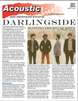 All four members met at Williams College in Williamstown, Mass., having sung together in one of the school’s eight a cappella groups, the Octet, and at different times having taken the same songwriting course given by the esteemed Bernice Lewis. There, at her urging, they were taught to “kill your darlings,” those lyrics that come too easily, are too facile or “clever,” that get in the way of the forward movement of the piece. They briefly considered the name “Darling-cide” (e.g., homicide, fratricide), but decided it was too morbid; thus, it became “Darlingside.”