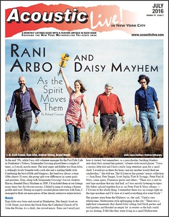 Rani Arbo was born and raised in Manhattan. Her family lived on 112th Street, just down the block from the Cathedral Church of St. John the Divine. As a child, she craved music. Rani can’t recall just how it started, but remembers, as a preschooler, building blanket-and-chair forts around her parents’ cabinet-style record player. “I was a serious little kid and I had a really long attention span for a small child. I would go in there for hours and my mother would feed me sandwiches,” she told me. She’d listen to her parents’ music collection — Joan Baez, Pete Seeger, Scott Joplin, Flatt & Scruggs, Peter Paul & Mary, some opera, Flamenco guitar and others. “There was a reel-to-reel tape machine that my dad had, so I was mostly listening to tapes. My father spliced together five or six Peter Paul & Mary albums — I’d listen to the whole thing. I remember there was an orange light on the tape machine and I’d stare at it until everything else went black.”