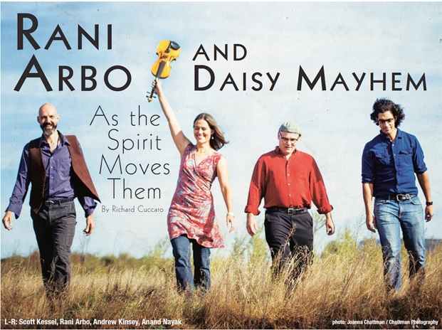 In the mid ’90s, while I was still volunteer manager for the Fast Folk Cafe in Manhattan’s Tribeca, Salamander Crossing played there a couple of times, as I recall, maybe more. The lead singer and fiddler was Rani Arbo, a strikingly lovely brunette with a rich alto and a sizzling fiddle style. Combining the best of folk and bluegrass, the band was always a treat. After almost 10 years, the group split over differences in career goals and priorities. Rani, along with Salamander Crossing’s bassist, Andrew Kinsey, founded Daisy Mayhem in 2000. I’d included them in our listings many times but, for obscure reasons, I failed to jump at writing a feature profile until now. During an eagerly awaited phone interview with Rani, I managed to flesh out more pieces of her already extensive online history.