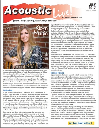 I discovered Kipyn for myself when she performed at the 2016 Falcon Ridge Folk Festival’s Emerging Artists showcase. She was my pick for the best act. She has been chosen as one of this year’s “Most Wanted to Return” and will perform with two other acts in that category at the festival this year. Acoustic Live in NYC has asked Kipyn to play at our booth in our unplugged showcases and she has graciously accepted. We’ve penciled her in for Saturday, Aug. 5 at 4:30 p.m., depending on her performance obligations at the festival.