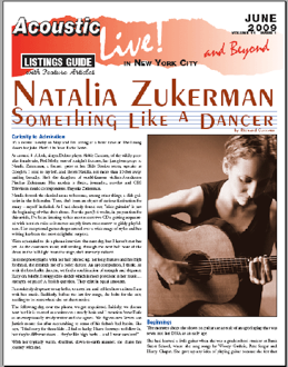 At around 8 o'clock, singer/Dobro player Abbie Gardner, of the wildly popular female trio, Red Molly, one of tonight's features, has just given props to Natalia Zukerman, a former guest at her Slide Session series, upstairs at Googie's. I look to my left, and there's Natalia, not more than 10 feet away, smiling broadly. She's the daughter of world-famous violinist/conductor Pinchas Zukerman. Her mother is flutist, journalist, novelist and CBS Television music correspondent, Eugenia Zukerman.
