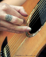 The evolution toward a fuller range of styles went something like this: "The open tunings were starting to drive me crazy," she says, "I couldn't get enough color. So I went back to standard tuning. Then, to learn some jazz chords, I got a fake book and took a few lessons from [jazz guitarist] Mary Halverson. Also when she stated playing out, she played gigs with Nadine Goellner (a favorite of WFUV-FM DJ John Platt), and they learned a lot of jazz standards together so they could get restaurant gigs. From that, Natalia now has about 12 jazz standards she can insert into her repertoire.