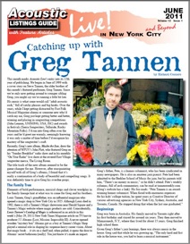 This month marks Acoustic Live’s entry into its 12th year of publishing. We began in June of 1999 with a cover story on Steve Tannen, the older brother of this month’s featured performer, Greg Tannen. Since we’re only now getting around to younger sibling Greg, you might say we’re running a little bit late.