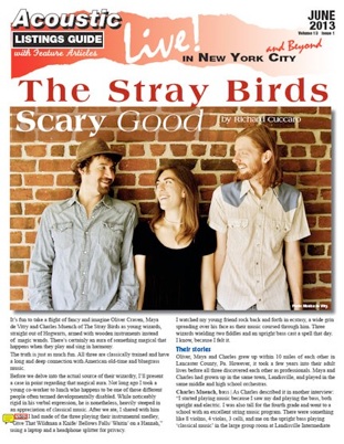 The Stray Birds will make its lone area appearance for this month on June 29 at the American Roots Music Festival at Caramoor. We’ll see them again at Falcon Ridge Folk Festival in Hillsdale, N.Y. (Aug. 2, 3 and 4).