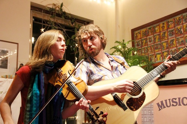 One of the most stunningly beautiful songs that we’ve heard in a long time is “Dream in Blue,” sung by Maya and Charles which leads off the 2012 album The Stray Birds. Maya jumps off fiddle to take a turn at the banjo.