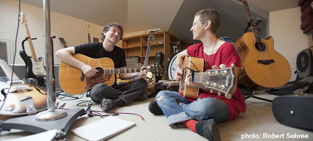 Finally, they couldn’t ignore what was right in front of them and asked each other, “What is this? What the heck are we doing here? If we’re writing together and playing together, shouldn’t we be living together?” In 2003, out of desperation and a mutual drive to see if they could make it work, both as a couple and as a musical act, they relocated to what they felt was “neutral ground” — Northampton, Mass. Neither would have any kind of geographical advantage (support network, friends, etc.). The move was productive, but extremely hard on both of them. They set up a recording studio — “since we had no life” — and recorded and wrote. They knew three people in town and when they arrived, those people either moved away or went on tour.
