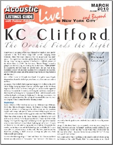 special. The singer’s voice came through the ether like mercury — liquid and shining. I was listening to a preview of Orchid, K.C. Clifford’s newest CD (it releases March 2, 2010). The first track, “Broken Things,” offered a glimpse into the wrenching, soul-searing journey she’s taken. “I gave up hopin’ for a guarantee, but love keeps her promise every time you look at me. Somewhere between hell and sheer happiness, there’s a house by the oceanside. And we’ll fill it with dreams and all the broken things that the morning washed in with the tide…”