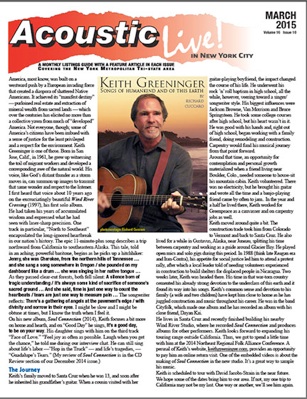 On his new album, Soul Connection (2014), Keith focuses a bit more on home and hearth, and on “Good Day” he sings, It’s a good day, to be on your way. His daughter sings with him on the third track “Face of Love.” “Feel joy as often as possible. Laugh when you get the chance,” he told me during our interview chat. He can still sing about life’s labor —”Hop in the Truck” — and life’s tragedies, — “Guadalupe’s Tears.” (My review of Soul Connection is in the CD Review section of our December 2014 issue.)