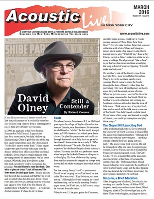 In 2006, he appeared at the New Bedford Summerfest Folk Festival. I approached him for a cover article, but didn’t follow up. Embarrassing. Olney is probably one of the top five singer/songwriters alive. He’s been called “Nashville’s answer to the Bard.” Many singer/songwriters get absorbed with angst over the demise of their love affairs and other emotional potholes. David Olney occupies himself with inventing stories for other entities. On his latest release, When the Deal Goes Down, in the title track, he exhorts God to re-examine his priorities: You don’t have to raise the dead / Give wine or give me bread / Just tell me you’ll be there when the deal goes down. “People need to feel their life has meaning and that they’re loved and accepted when the deal goes down.”