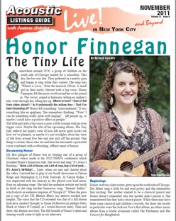 Honor has maintained an intent focus on her songwriting, attending The Jack Hardy Songwriter’s Group, which forges on after Jack’s passing. She was a finalist at the Connecticut Folk Festival’s 2011 songwriting competition and she hosts the monthly Alphabet City Songwriter’s Exchange, an in-the-round performance of three to four players. It’s been held at Googie’s, above the Living Room and more recently at Gizzi’s on 8th Street (between 5th and 6th Avenues) in Greenwich Village.