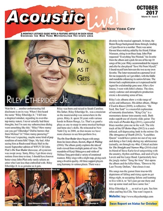 Riley was born and raised in South Carolina. His father, Riley Etheridge Sr., was a musician so the musicianship was somewhere in the genes. Riley Jr. spent 20 years with various bands in Baton Rouge, La. That’s as good a place as any to steep in some musical heritage and hone one’s skills. He relocated to New York City in 2008, so that means we have more chances to see him perform live.
